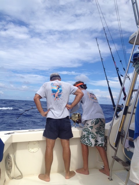 We kept him coming and it became pretty clear we had a decent fish on the end. He had a couple decent runs and didn't want to stray far from the thermocline. After about an hour and a half we got him to the wind on and took off the weight. Swordfishing during the day requires the use of a very heavy lead (12-20lbs) in order to contact bottom in over 1600'.