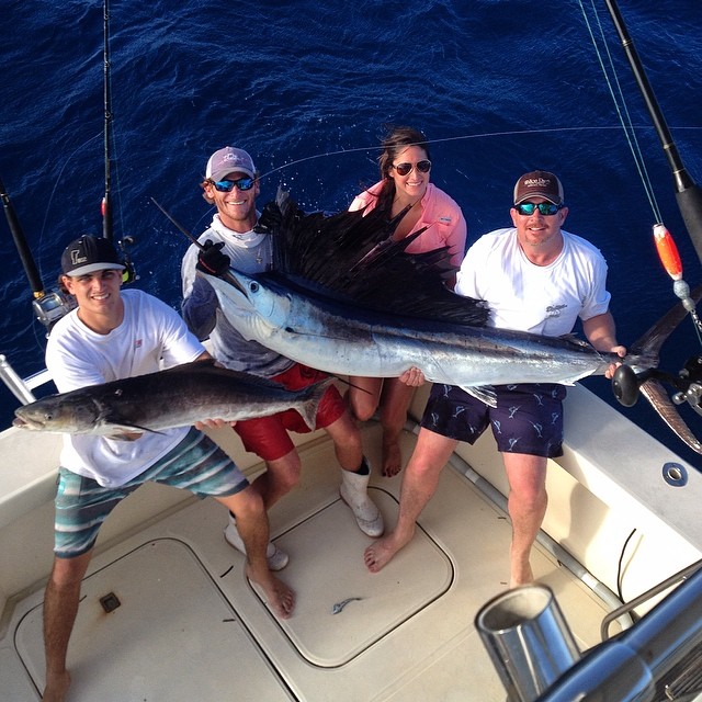On April 16th we caught 4 sails, a big mahi, and a blackfin tuna between two short half days On April 27th we caught a 27lb cobia, 3 keeper mutton snapper, a flag yellowtail, and a few bonito during a morning half day